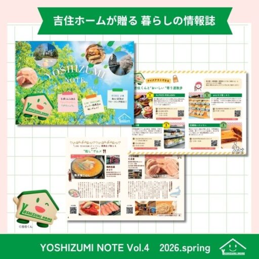 吉住ホームが発行する暮らしの情報誌「YOSHIZUMI NOTE」Vol.4を発行いたしました。 今号は、LINE吉住メンバー(L.Y.M)の提携店が70店舗を突破したことを記念し、 中野坂上周辺の人気テイクアウト店や、 […]